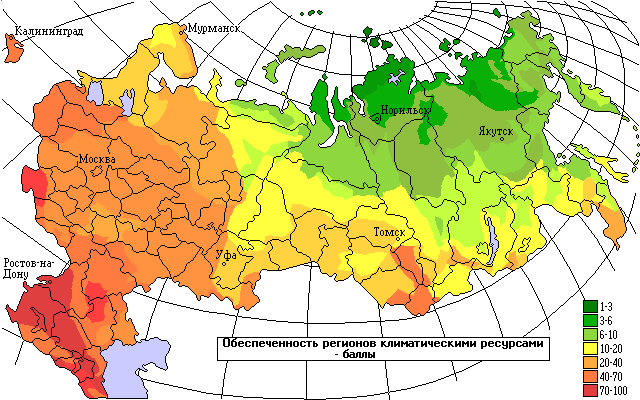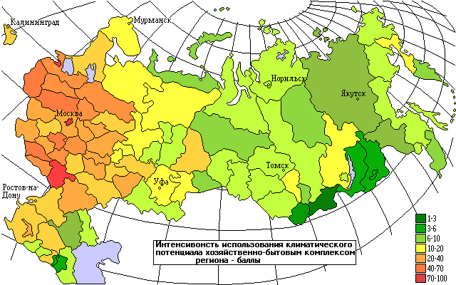 Карта 2. Интенсивность использования климатического потенциала хозяйственно-бытовым
